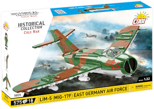 COBI-5825 LIM-5 (MIG-17F) EAST GERMANY AIR FORCE HISTORICAL COLLECTION COLD WAR - 575 Bausteine 1 FIGUR Maßstab 1:32 Altersgruppe 7+ Das Kampfflugzeug Lim-5 war eine sowjetische Lizenz Mikoyan MiG-17F, die von der polnischen Luftfahrtindustrie gebaut wurde. Die Produktion von LIM-Flugzeugen führte zu einer bedeutenden Entwicklung der Luftfahrtindustrie in Polen. Die Lim-5-Flugzeuge waren mit dem ebenfalls in Lizenz produzierten WK-1F-Motor ausgestattet. 120 Lim-5 und 40 Lim-5P wurden an die Deutsche Demokratische Republik ausgeliefert. Die ostdeutsche Luftfahrt bestellte bei Polen auch Teile für Reparaturen, Modernisierungen und Modifikationen des Flugzeugs. LIM-5 diente von 1958 bis 1985 in der deutschen Luftwaffe. Das Modellflugzeug LIM-5 (MIG-17F) wurde im Maßstab 1:32 konstruiert und besteht aus 575 hochwertigen Elementen. Alle Markierungen, Embleme und Inschriften auf dem Modell sind Drucke, die sich während des Gebrauchs nicht abnutzen. Das Set verfügt über bewegliche Elemente wie Räder und eine Öffnungskabine, in der Sie eine großartige Figur eines deutschen Piloten platzieren können. Die aus Bausteinen reproduzierte Tarnung sieht besonders schön aus. Das Set enthält einen Displayständer mit einer Platte mit dem Namen des Sets und dem Nationalitätszeichen. Dank der intuitiven Anleitung, die auf übersichtlichen Illustrationen basiert, ist die Konstruktion einfach. Das Flugzeug ist ein Muss für alle Fans von Luftfahrt, Militär und Militärtechnik. Es ist auch eine perfekte Ergänzung zu den Sammlungen der Streitkräfte, des Kalten Krieges und des Koreakriegs. In dieser Serie haben wir auch LIM-1 und LIM-5, MIG-15-Flugzeuge in der sowjetischen Version und die tschechoslowakischen S-102 und MIG-17 veröffentlicht. Das Set wurde komplett in Polen in der Europäischen Union hergestellt. • 575 hochwertige Bausteine • Hergestellt in der EU von einem Unternehmen mit über 20-jähriger Tradition • Die Bausteine erfüllen die Sicherheitsstandards von Produkten für Kinder • Voll kompatibel mit anderen Marken von Bausteinen • Bausteine mit Drucken kratzen oder schmieren nicht und verblassen nicht während des Spiels oder unter Temperatureinfluss • Klare und intuitive Anweisungen basierend auf Illustrationen und Schritt-für-Schritt-Anweisungen • 100% Drucke, keine Aufkleber • Blockdisplayständer • Typenschild • Pilotfigur Modellabmessungen (Länge x Breite x Höhe): 360 mm x 300 mm x 110 mm