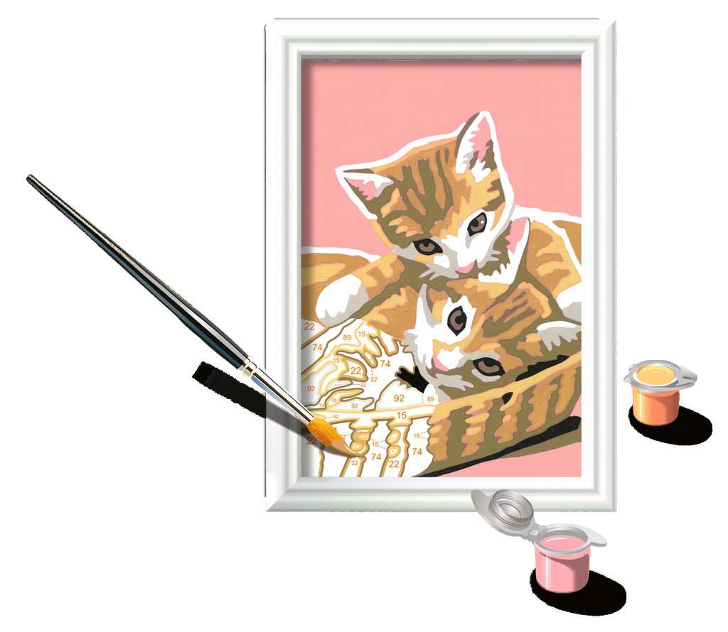Farbige Motivlinien: Größerer Malspaß & ein schöneres Ergebnis!Dank der farbigen Motivlinien, können die Kinder das ganze Motiv Katzenbabys und die Farben schneller erkennen. Der Pinsel hat eine gute Führung und so entsteht nach und nach ein perfektes Bild.