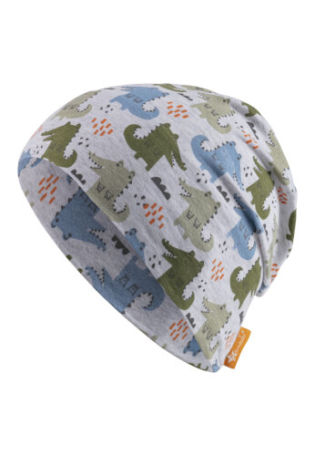 Slouch-Beanie aus Melange-Singlejersey bedruckt mit Krokodilen