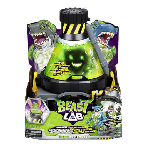 WIRST DU ES SCHAFFEN, DIE WELT ZU RETTEN? Die Welt ist in Gefahr – und es gibt nur einen Weg, sie zu BESCHÜTZEN: entfessle ein mächtiges MONSTER! Führe ein Experiment mit deiner Labor-Maschine durch und erschaffe einen von ZWEI HAIEN! Welchen Hai wirst du wohl mit der Monster-Labor-Maschine entfesseln: HAVOC HAMMERHEAD oder MAYHEM MEGASHARK? Betätige den NOTFALLHEBEL nachdem du alle Zutaten hinzugegeben hast, um die Flüssigkeit ablaufen zu lassen und dein MONSTER IM INNEREN zu ENTHÜLLEN! Dein Hai-Monster erscheint in einer Wolke aus echtem Labor-Nebel und wird alle in Staunen versetzen! Nun ist es Zeit, sich IN DEN KAMPF ZU STÜRZEN! Mit ihrer Pandämonium-Waffe können die Hai-Monster einen Power-Strike-Schwungangriff ausführen und mit ihrem furchterregenden Schlachtgebrüll und dem aufleuchtenden Power- Kristallkern Feinde in die Flucht schlagen! Doch deine Mission ist noch nicht zu Ende! Setze deine Labor-Maschine zurück und wiederhole das Experiment immer und immer wieder! Mit der Hai-Labor-Maschine von Beast Lab ist die RETTUNG der WELT nur ein Experiment entfernt.