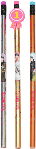 Einer ponytastischer als der andere: Die drei Bleistifte des Sets sehen einfach glänzend aus! In Silber, Gold und Kupfer, mit farbigen Radiergummis und tollen Aufdrucken von Miss Melody. Das verdient wirklich das Sieger-Schleifchen, welches als Anhänger am goldenen Bleistift baumelt. Haben-hüa-wollen!