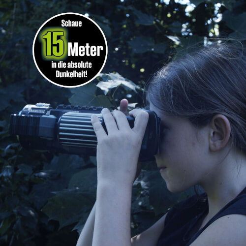 Hat sich da hinten etwas bewegt? Versteckt sich jemand hinter dem Baum? Mit dem Nachtsichtgerät mit Schärferegler bleibt nichts mehr verborgen! Auch in der größten Dunkelheit lassen sich Personen und Objekte in bis zu 15 Metern Entfernung entdecken. Durch das unsichtbare Licht der Infrarot-LED bleiben die Beobachtenden dabei selbst unbemerkt. Etwas ist noch nicht gut genug erkennbar? Mit dem integrierten Fernrohr werden die Objekte einfach näher herangeholt. Die Anleitung erklärt, wie das Gerät im Tag- und Nachmodus funktioniert und liefert Tipps. Ein cooles Gadget für Kinder ab acht Jahren, die genauso gerne ermitteln wie die drei ??? aus Rocky Beach.