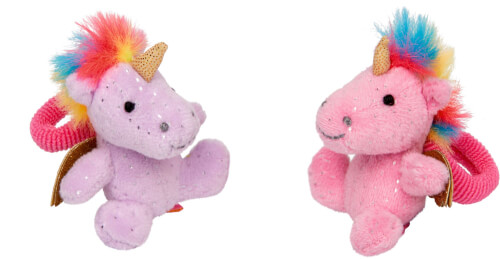 Willkommen im Einhorn-Paradies: Diesem zauberhaften Haargummi mit Plüsch-Einhorn kann wirklich niemand widerstehen! Mit Glitzerhorn und -flügeln, aus kuschelweichem Plüsch, in 2 Designs erhältlich. So entstehen vielfältige Frisuren.