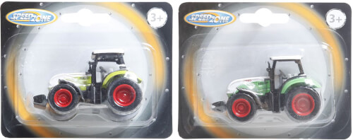 Speedzone D/C Traktor, mit Freilauf. In 3 verschiedenen Varianten erhältlich. Länge 7cm. Auf Blisterkarte. Kartengröße: W125xH100mm. Für Kinder ab 3 Jahren.