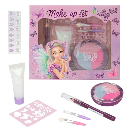Das Make-up-Set FAIRY LOVE von TOPModel hat alles für feenhafte Looks: ein Lidschatten-Döschen mit schimmernder Schminke in Rosa, Lila und Pink (Inhalt 2,4 g), einen Make-up-Stift in Lila (0,9 g), ein Körper-Glitzergel (12 ml), eine Schmink-Schablone mit süßen Motiven, tolle Deko-Steine für die Haut, zwei Pinsel und eine anschauliche Schmink-Anleitung.